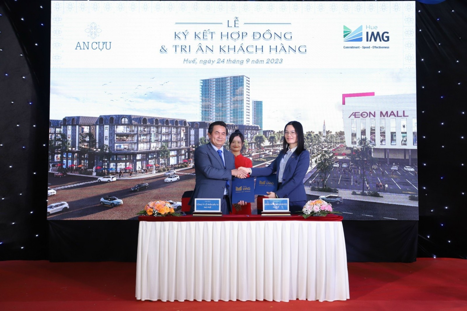 Vừa qua, ngày 24/9/2023 đã diễn ra sự kiện " Lễ Ký Kết Hợp Đồng & Tri Ân Khách Hàng" của Dự Án An Cựu City tại thành phố Huế, do Công ty Cổ phần Đầu tư IMG Huế tổ chức. Nhằm tôn vinh sự đoàn kết và thành công của một dự án bất động sản đầy triển vọng. Sự kiện này đã thu hút sự tham gia của nhiều nhà đầu tư và đối tác, đánh dấu một cột mốc quan trọng trong hành trình phát triển của Dự Án.